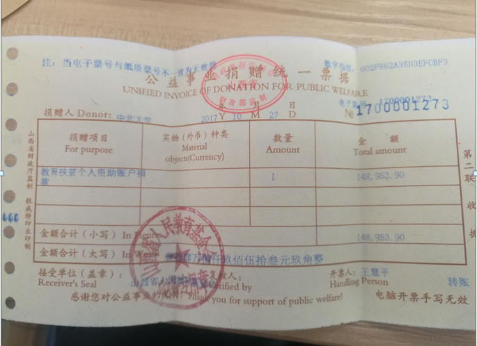 目前,所有捐助款项已经统一上缴至山西省人民教育基金会指定账户。涓流共汇,足以涌成江河;绵力齐聚,定能众志成城;感谢众多爱心人士的积极帮助,希望贫困地区人民和家庭经济困难的学生早日走出贫困,奔向小康!